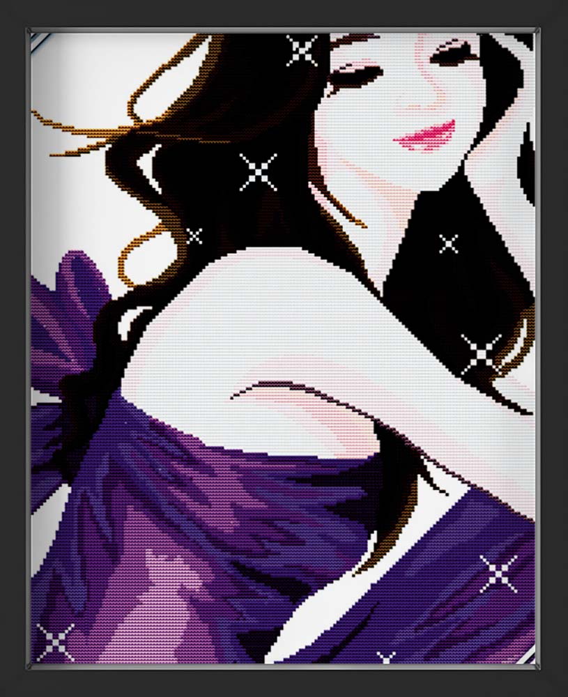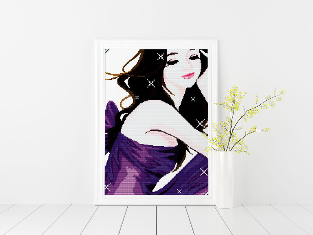 Kreuzstich -  Abstrakte Frau im lila Kleid | 30x40 cm - Diy - Fadenkunst