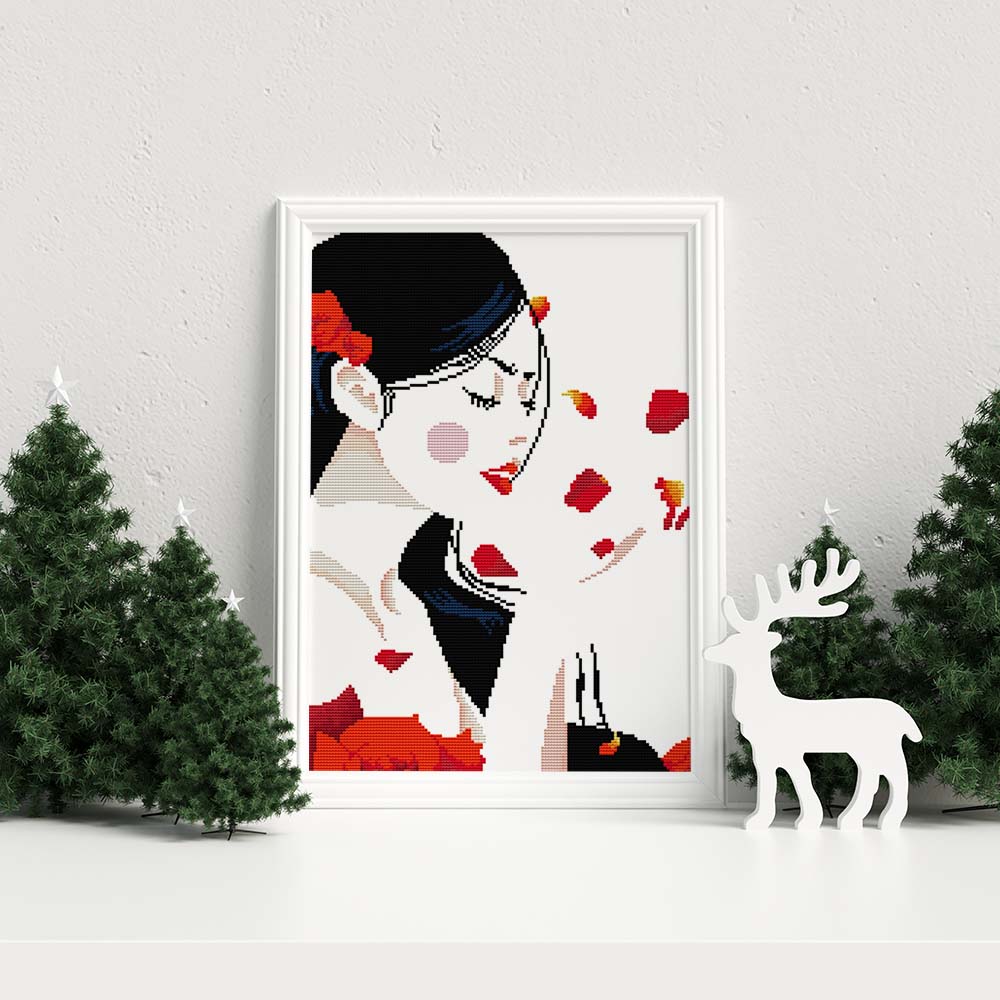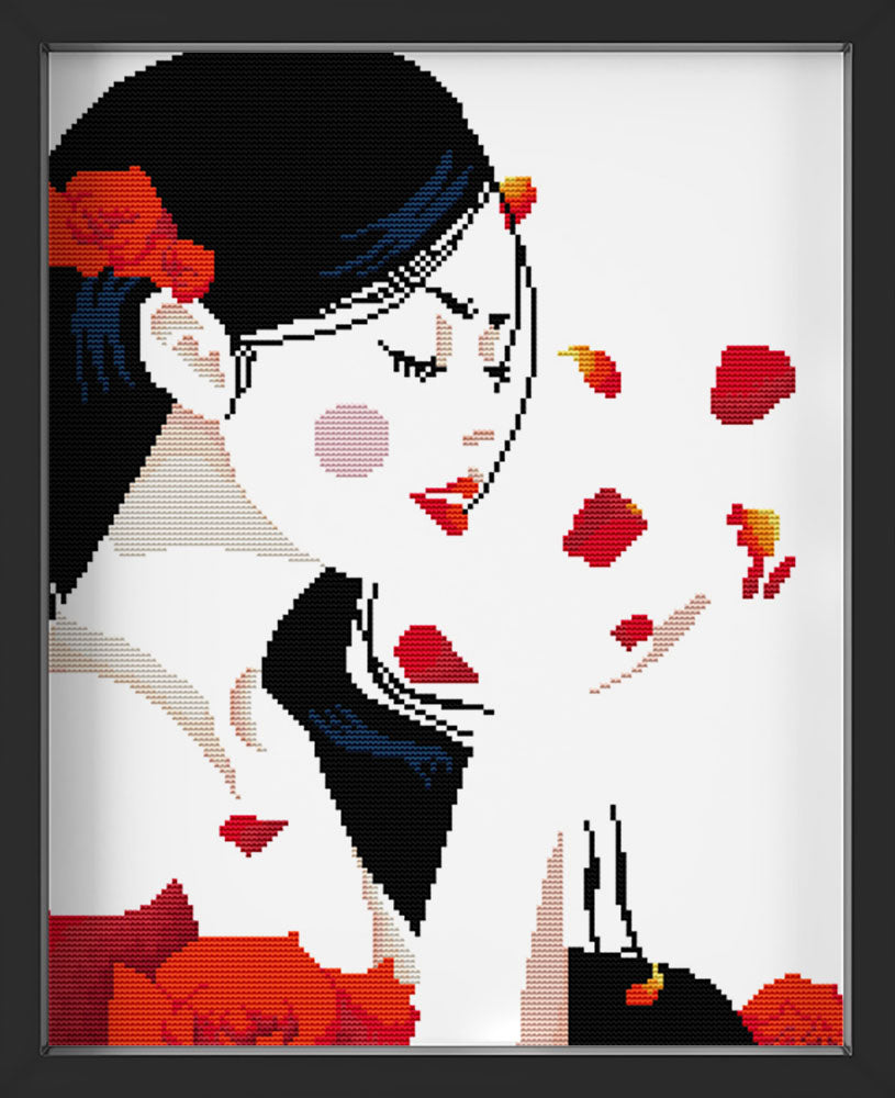 Kreuzstich - Abstrakte Person mit Rosenblättern | 40x40 cm - Diy - Fadenkunst