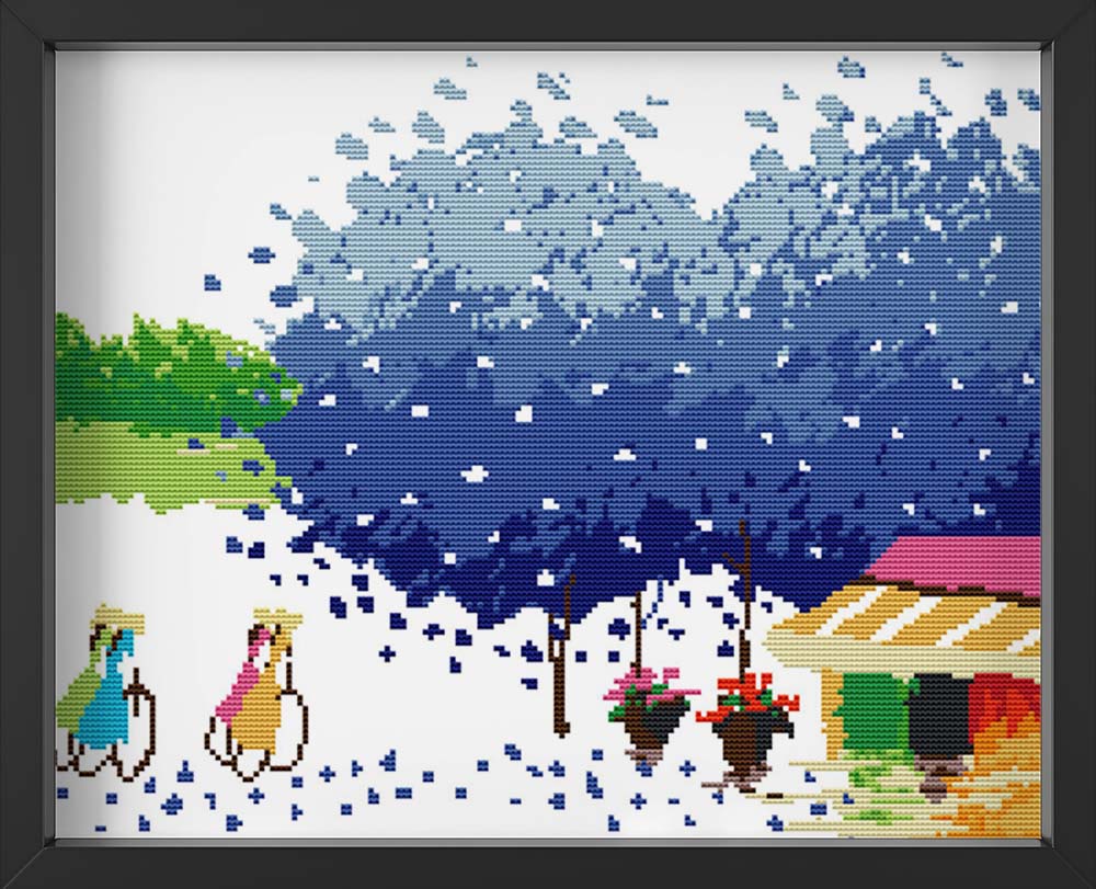 Kreuzstich - abstrakter Baum in blau | 45x35 cm - Diy - Fadenkunst
