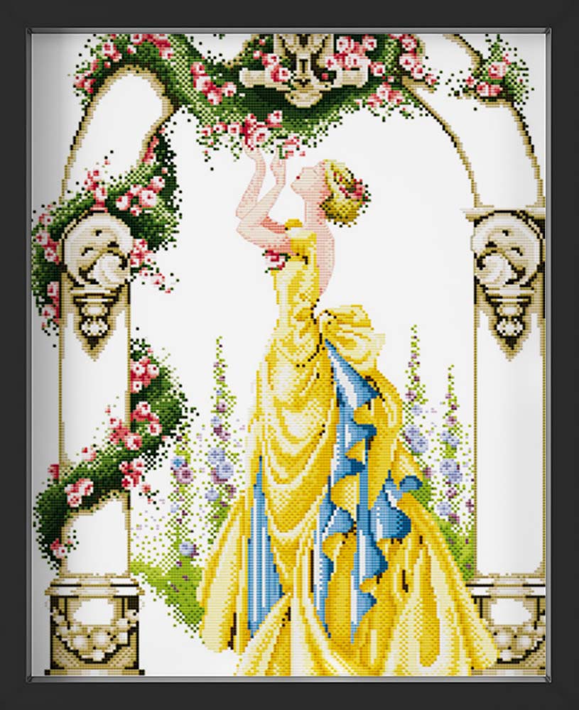Kreuzstich - Frau im gelben Abendkleid | 40x60 cm