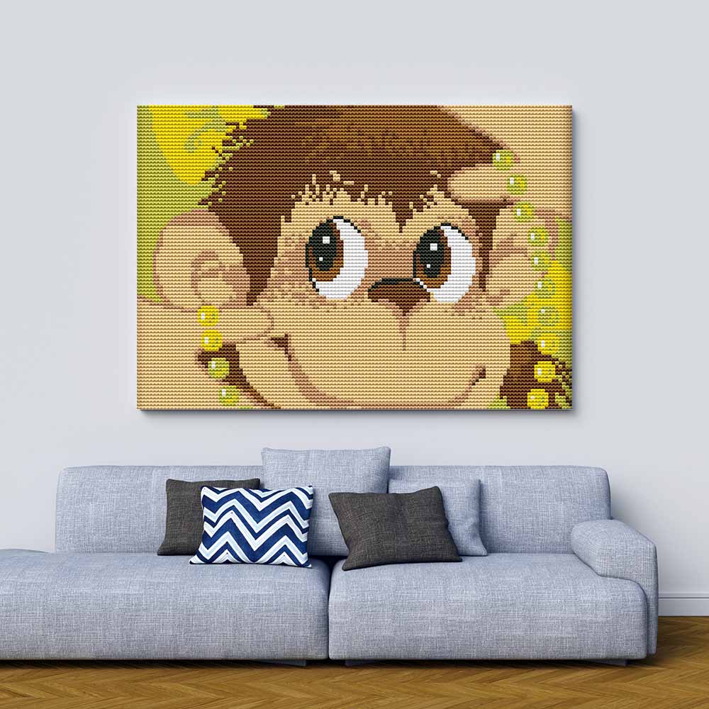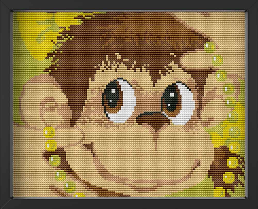 Kreuzstich -  süßer Affe | 30x30 cm - Diy - Fadenkunst