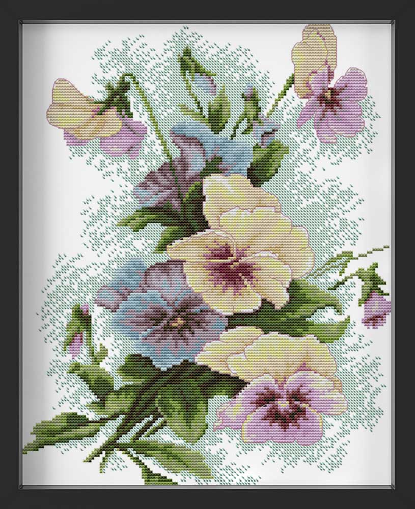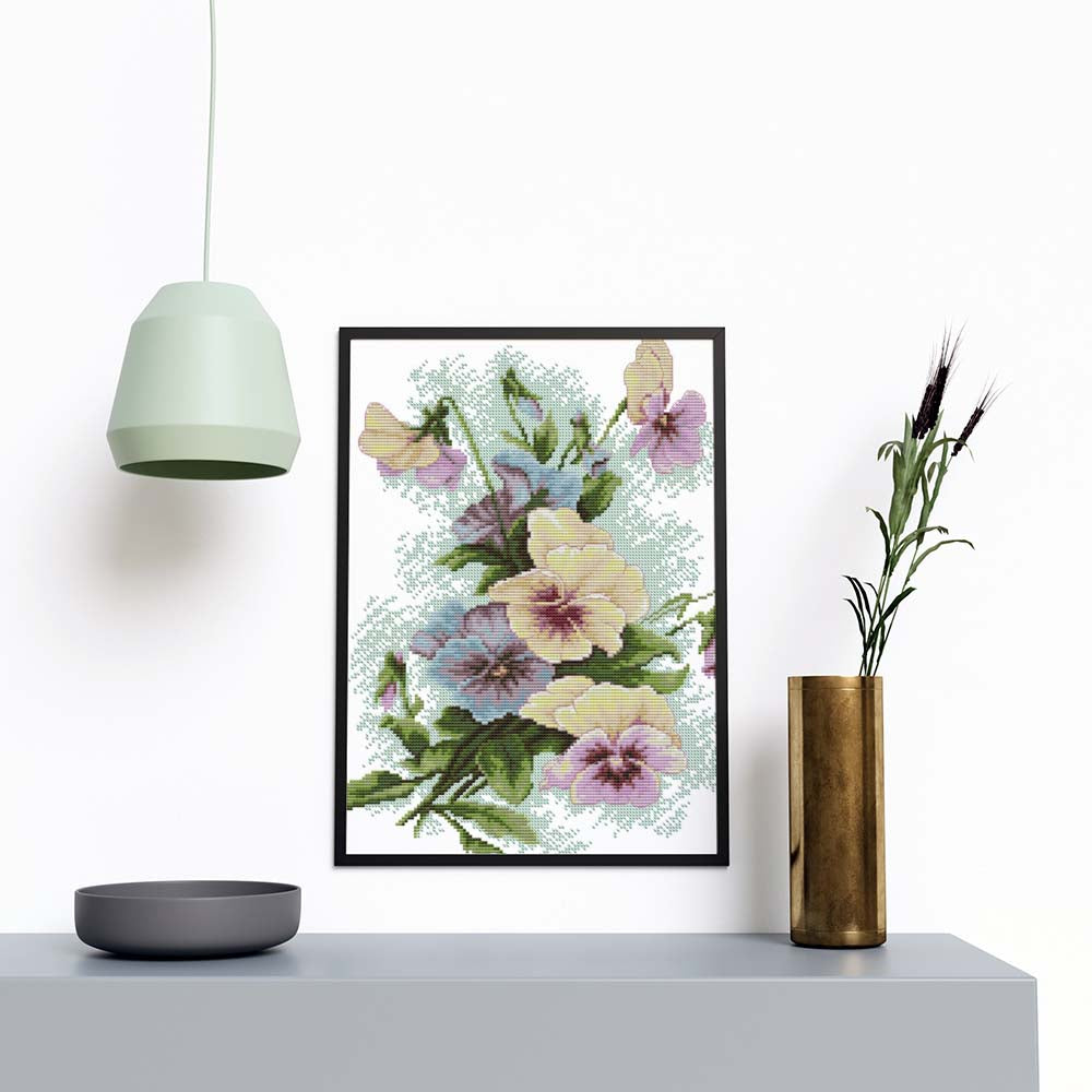 Kreuzstich - Stiefmütterchen | 30x40 cm - Diy - Fadenkunst