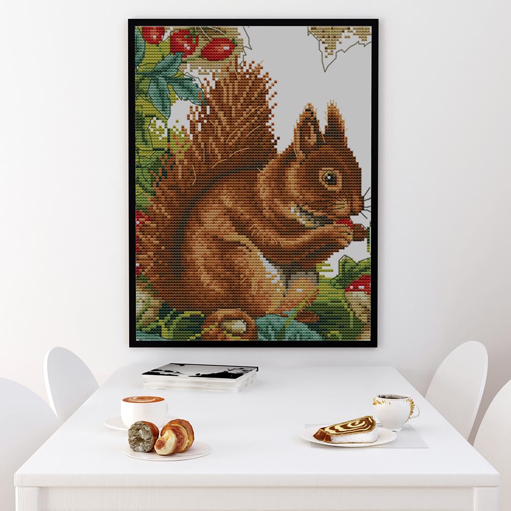 Kreuzstich - Eichhörnchen im Wald | 30x35 cm - Diy - Fadenkunst