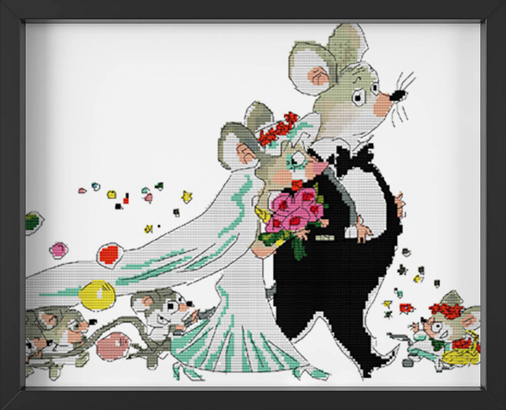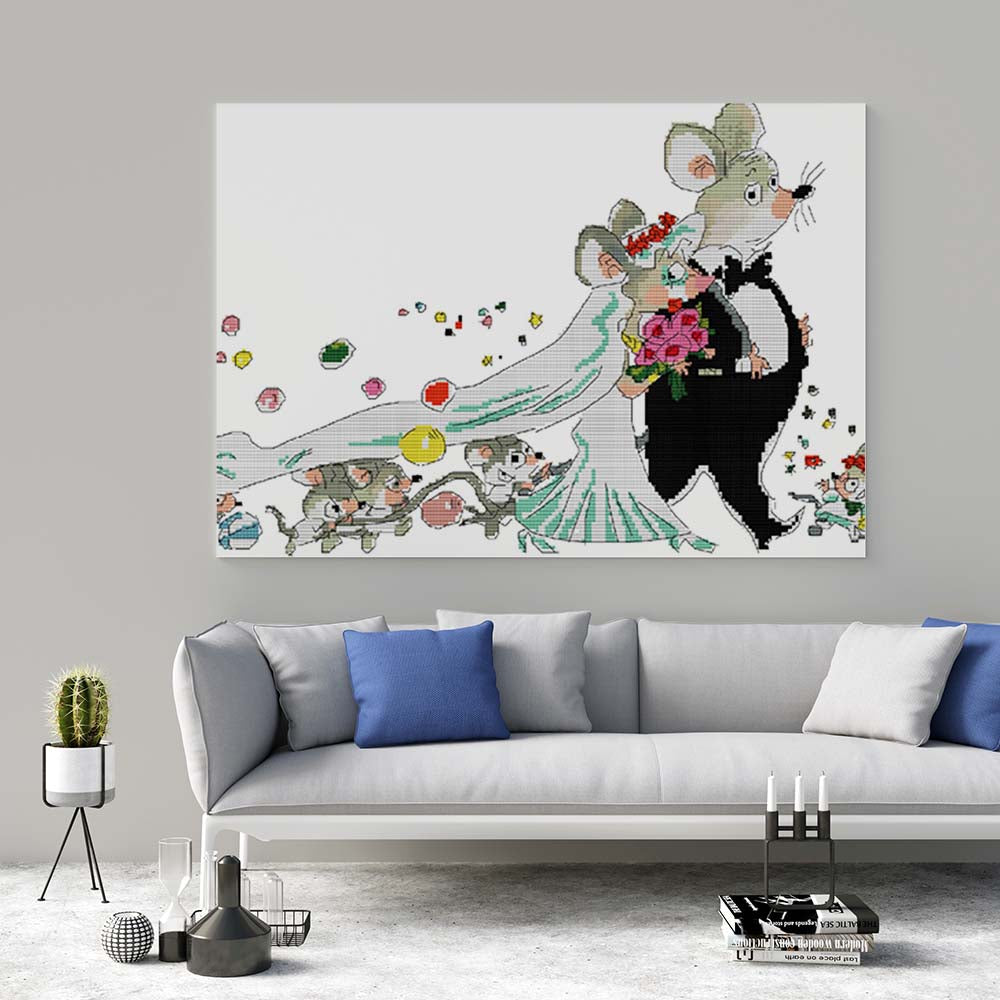 Kreuzstich -  Hochzeit süße Mäuse | 60x30 cm - Diy - Fadenkunst