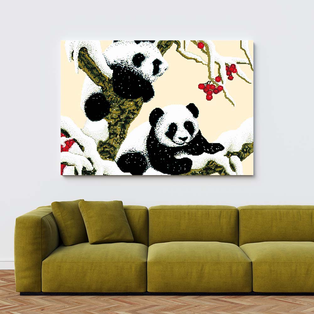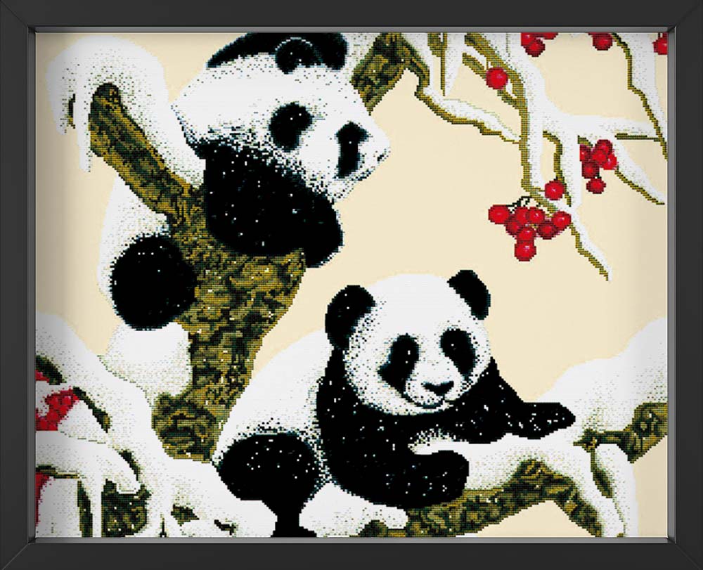 Kreuzstich -  Pandas im Schnee | 60x60 cm - Diy - Fadenkunst