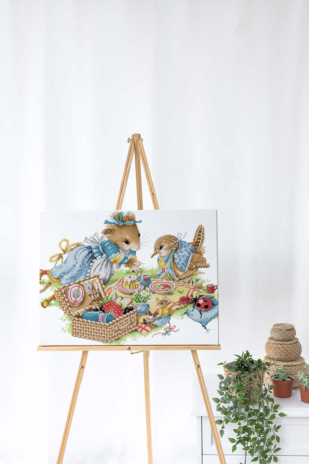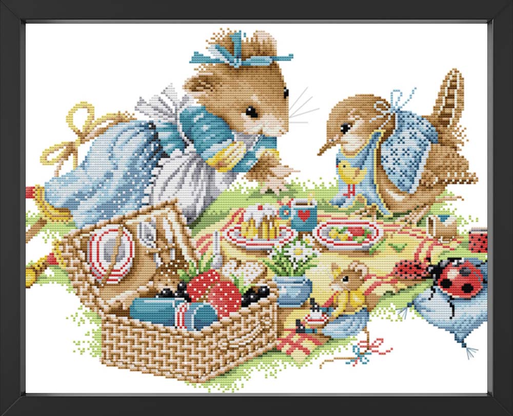Kreuzstich - Waldtiere beim picknicken | 50x35 cm