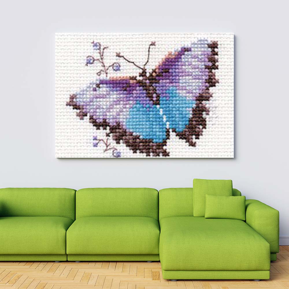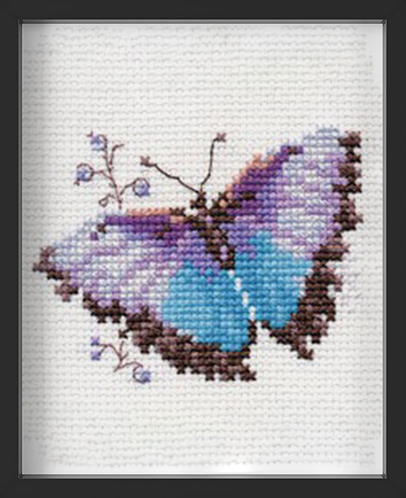Kreuzstich - Bunte Schmetterlinge - Blau | 10x10 cm - Diy - Fadenkunst