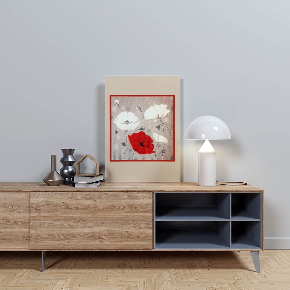 Nur die rote Mohnblume ist zu Sticken, der Rest ist vorgedruckt.