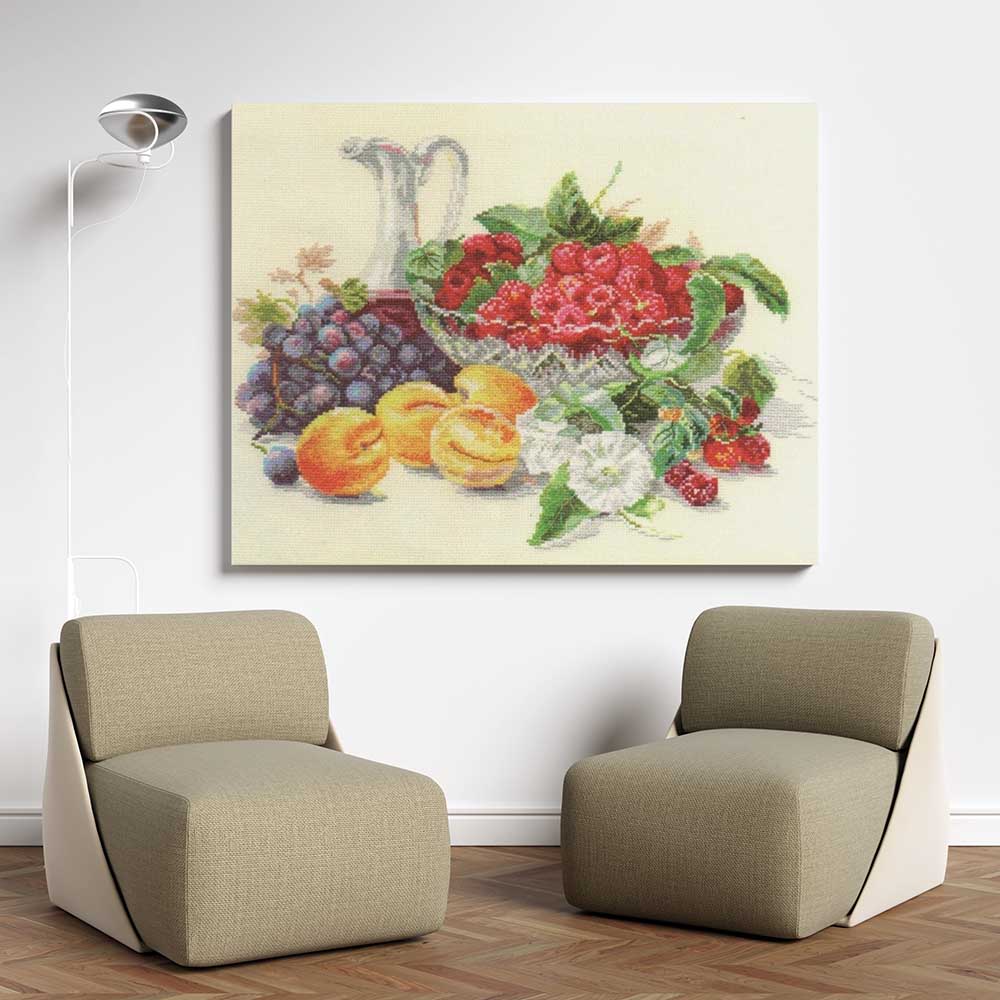 Kreuzstich - Aprikosen und Himbeeren | 40x30 cm