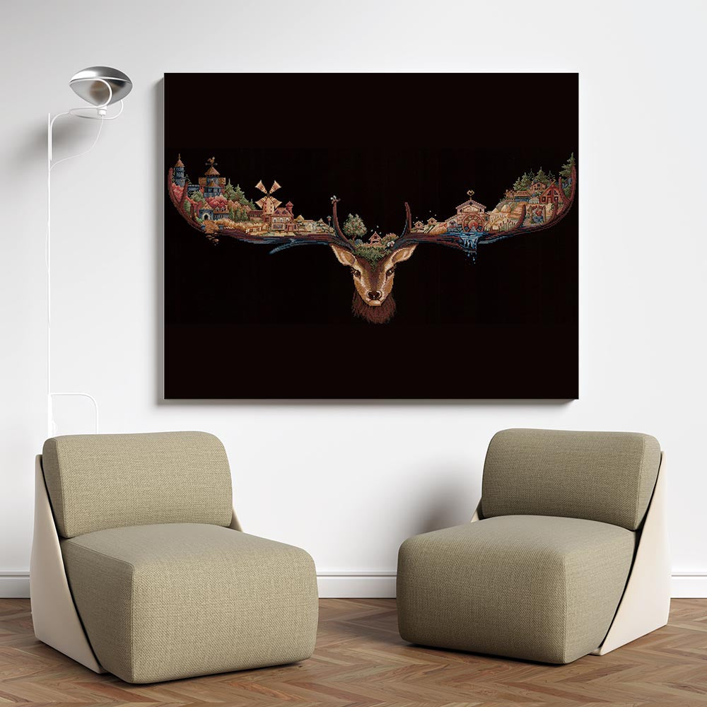 Kreuzstich - Hirschland | 75x30 cm - Diy - Fadenkunst