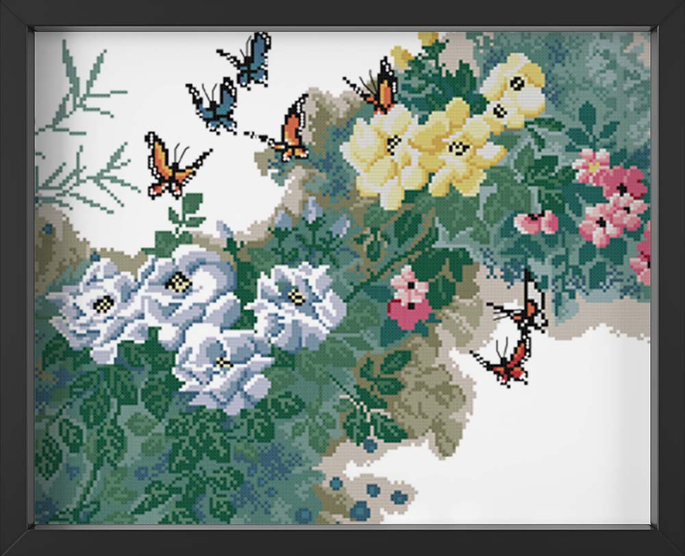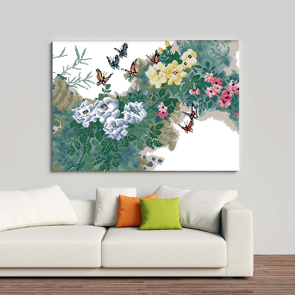 Kreuzstich - Blumen mit Schmetterlingen | 60x30 cm - Diy - Fadenkunst