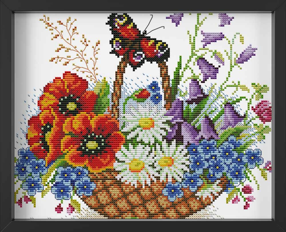 Kreuzstich - Bumenkorb mit Schmetterling | 30x30 cm