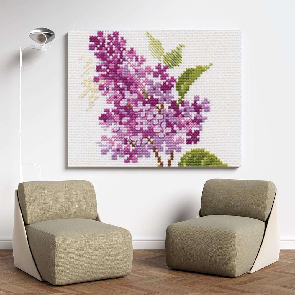 Kreuzstich - Fliederzweig | 15x15 cm - Diy - Fadenkunst