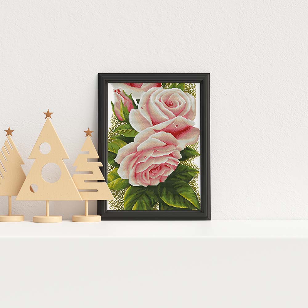 Kreuzstich - große Rose rosa | 30x80 cm - Diy - Fadenkunst