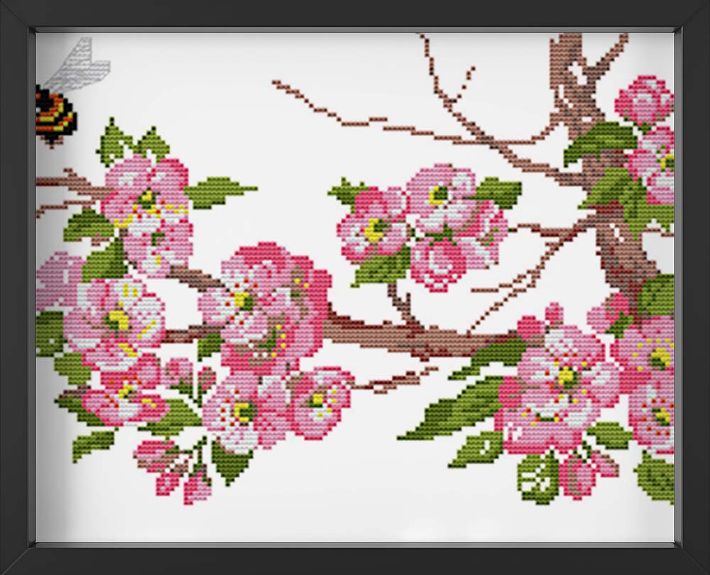 Kreuzstich - Kirschblüten Zweig | 50x30 cm