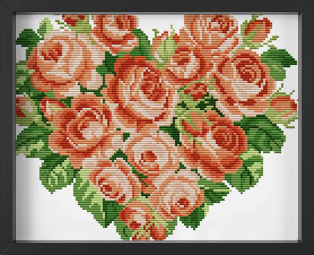 Kreuzstich -  rotes Rosenherz | 30x30 - Diy - Fadenkunst