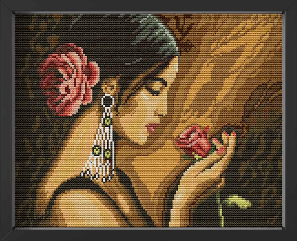 Kreuzstich -  schöne Frau mit Rose | 30x30 cm - Diy - Fadenkunst