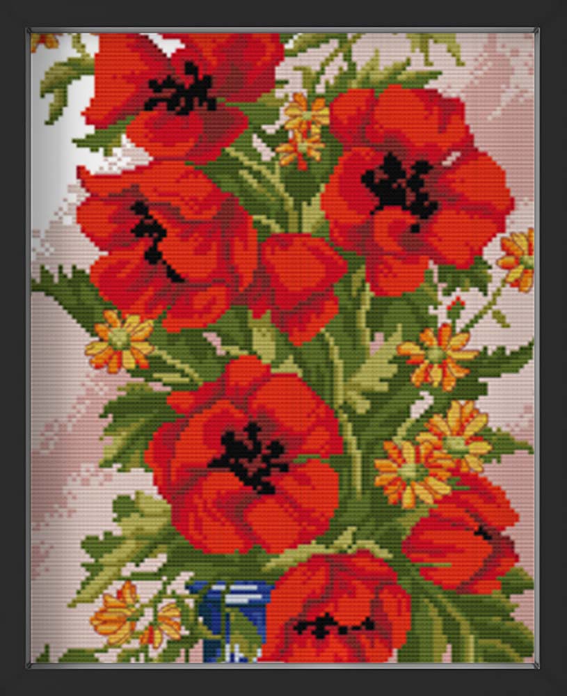 Kreuzstich - schöne rote Mohnblumen | 30x60 cm - Diy - Fadenkunst