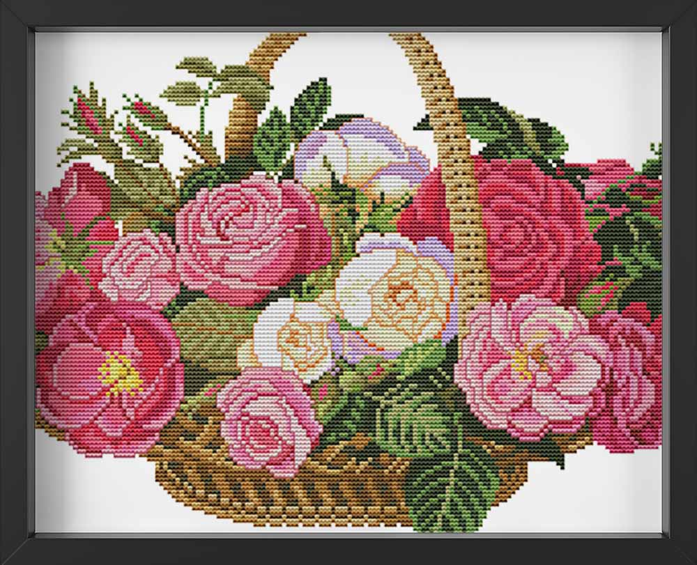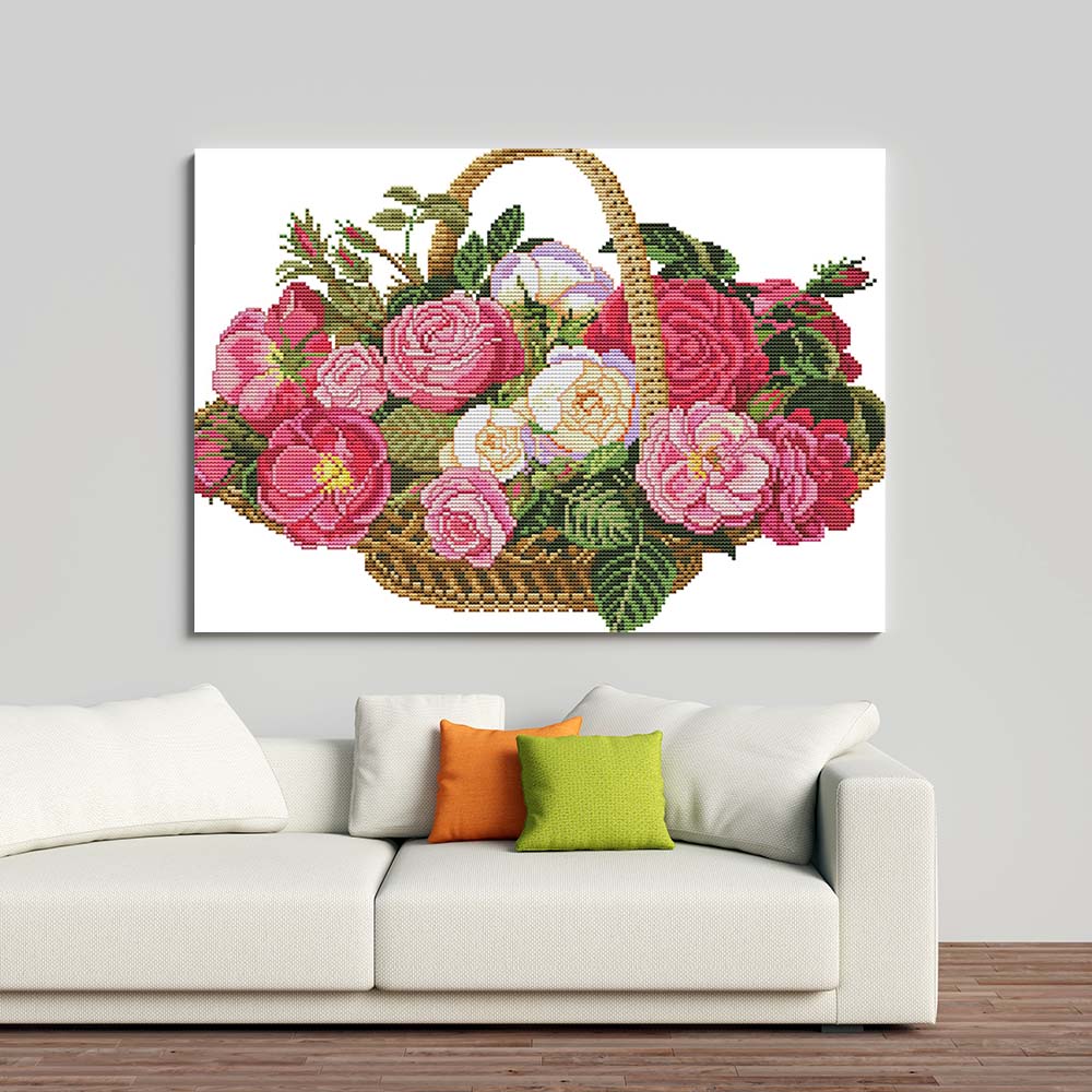 Kreuzstich - schöne verschiedene Rosen | 40x30 cm - Diy - Fadenkunst