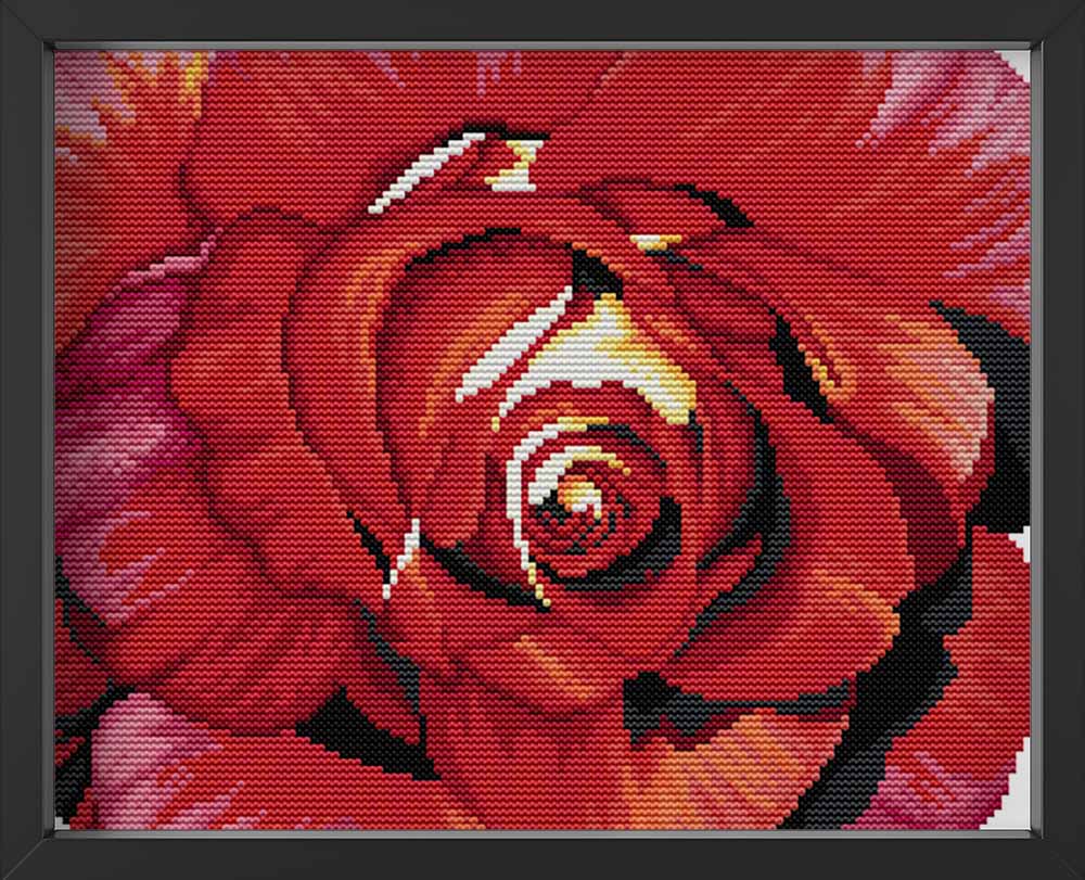 Kreuzstich - wunderschöne rote Rose | 30x30 cm