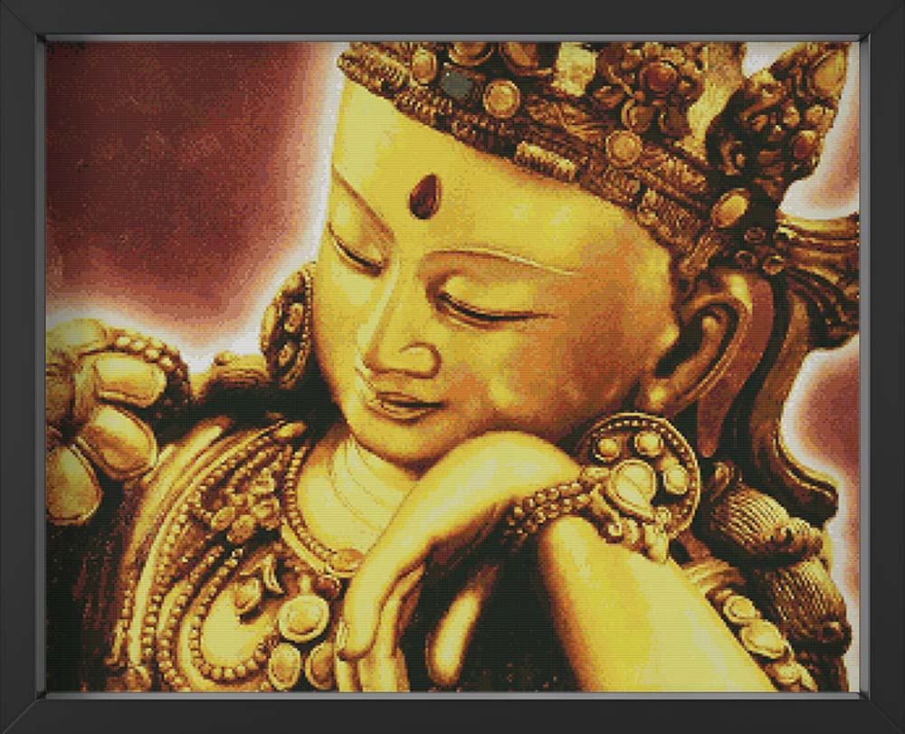Kreuzstich -  Goldener Buddha | 60x60 cm - Diy - Fadenkunst