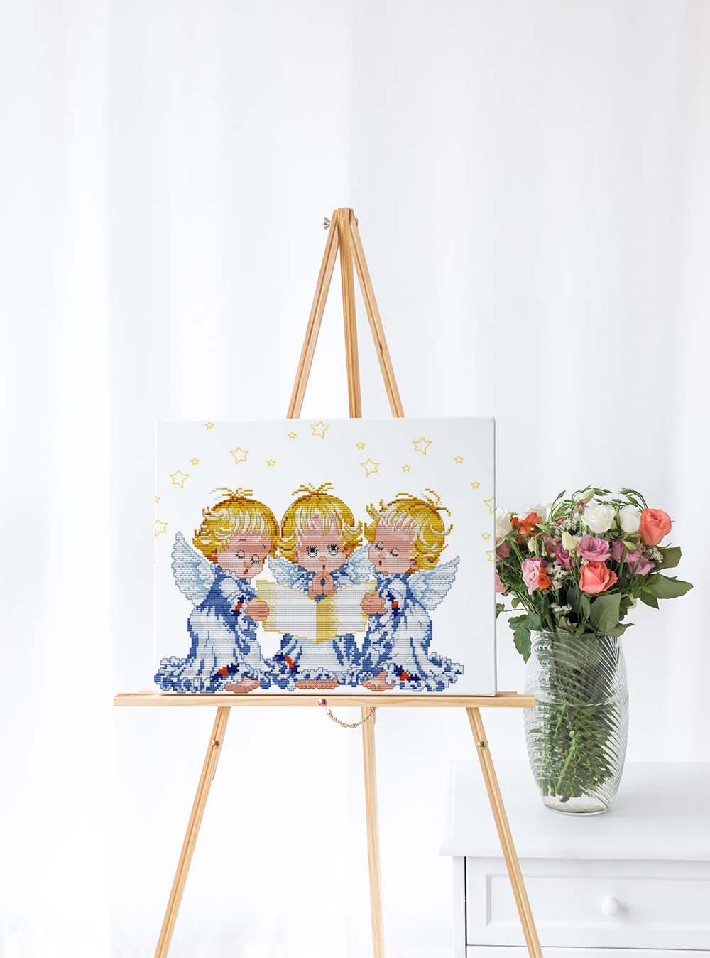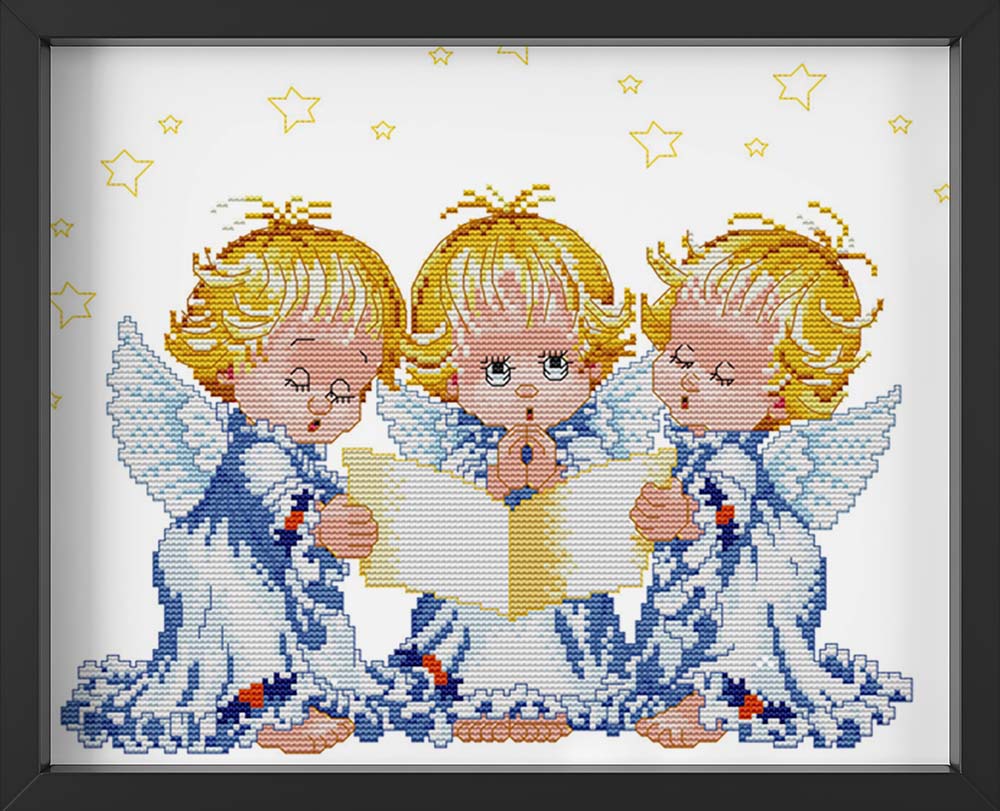 Kreuzstich -  Drei Engel am singen | 40x30 cm - Diy - Fadenkunst
