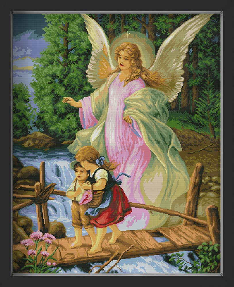 Kreuzstich - Engel mit zwei Kindern | 60x80 cm - Diy - Fadenkunst