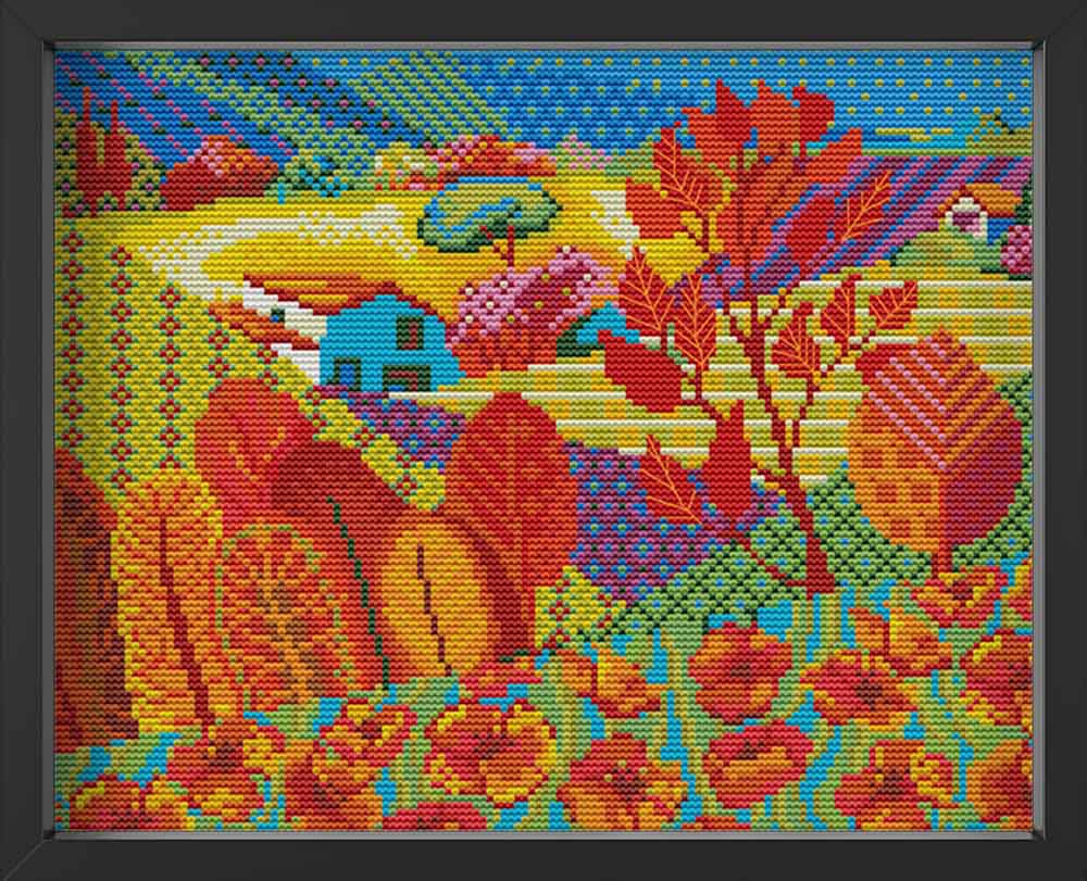 Kreuzstich - abstrakte bunte Landschaft | 35x30 cm - Diy - Fadenkunst