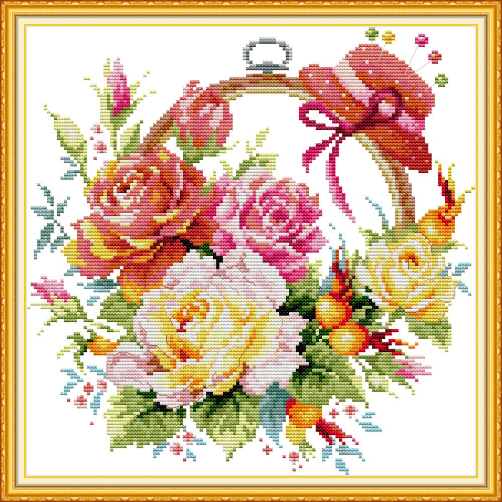 Kreuzstich | Blumengirlande mit Hut- 14 x 14 cm
