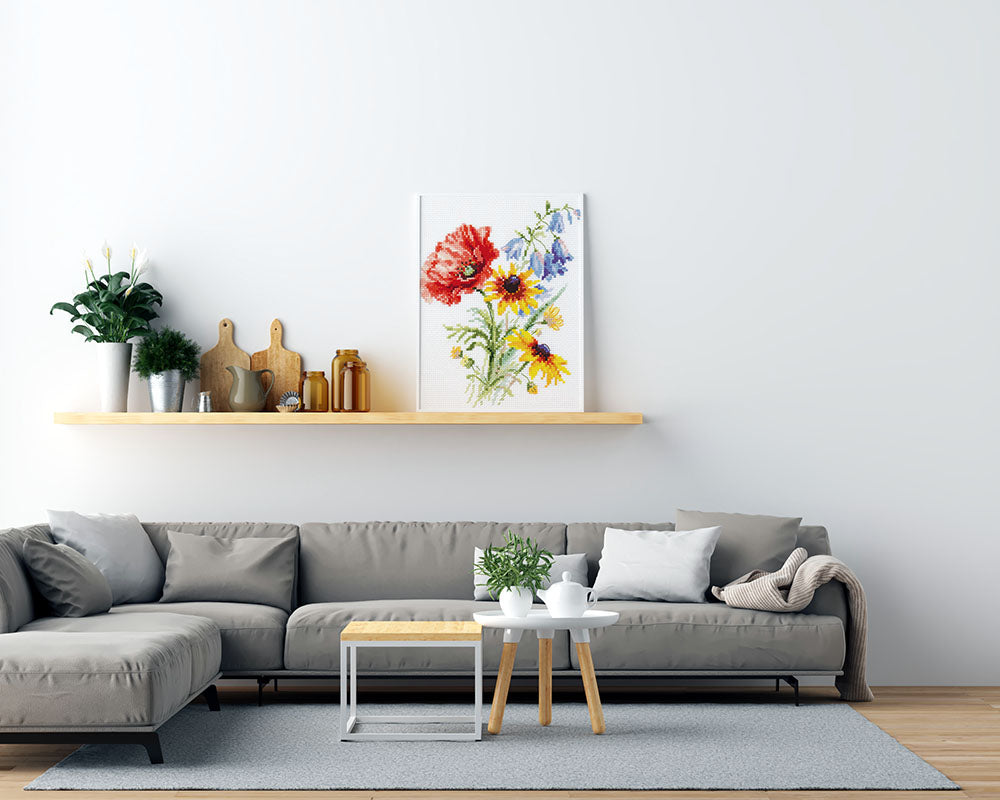 Kreuzstich - Blumenstrauß mit Mohn | 15x20 cm - Diy - Fadenkunst