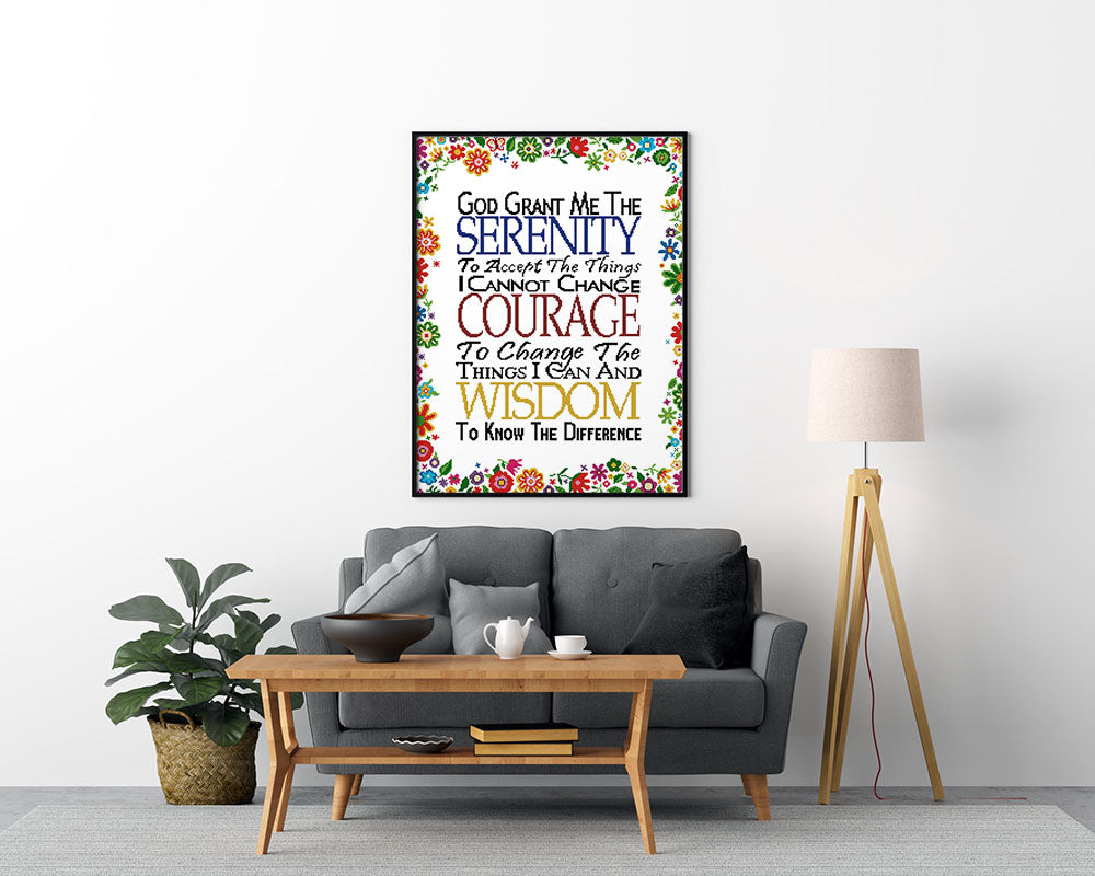 Kreuzstich - Bunte Schrift mit Blumen | 50x60 cm - Diy - Fadenkunst