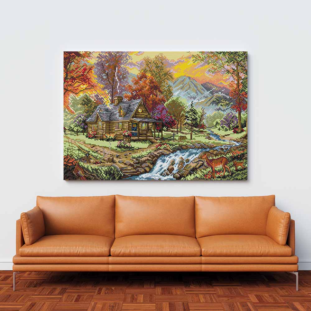 Kreuzstich -  Landschaft mit Bergen und Haus | 40x30 cm - Diy - Fadenkunst