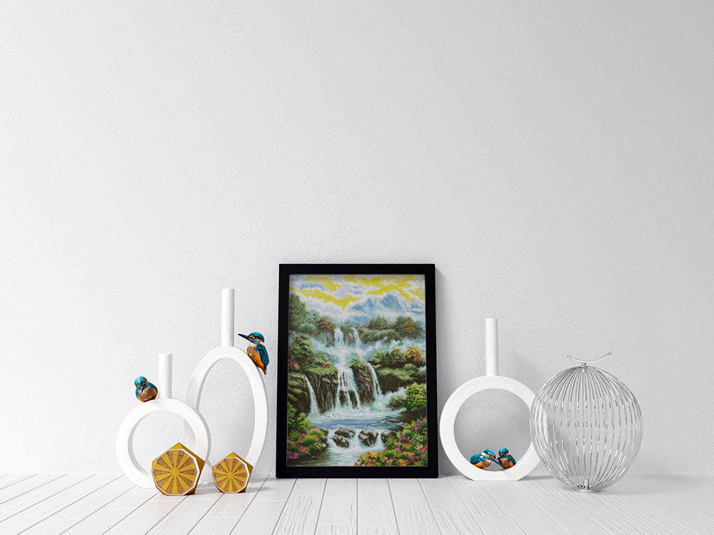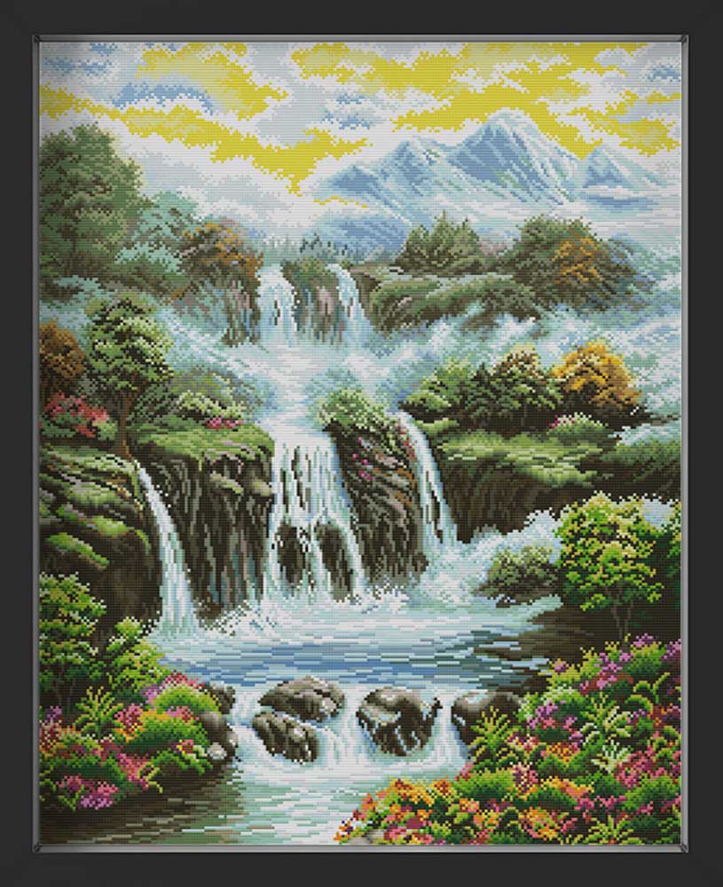 Kreuzstich - Landschaft mit Wasserfall | 50x60 cm - Diy - Fadenkunst