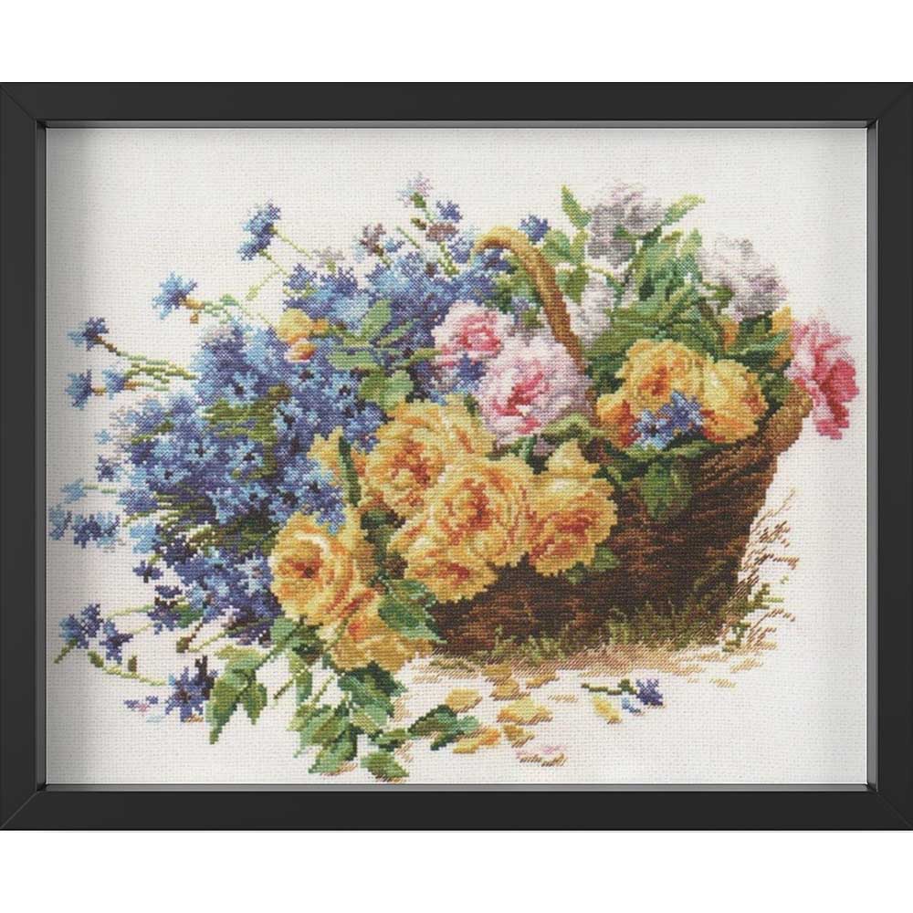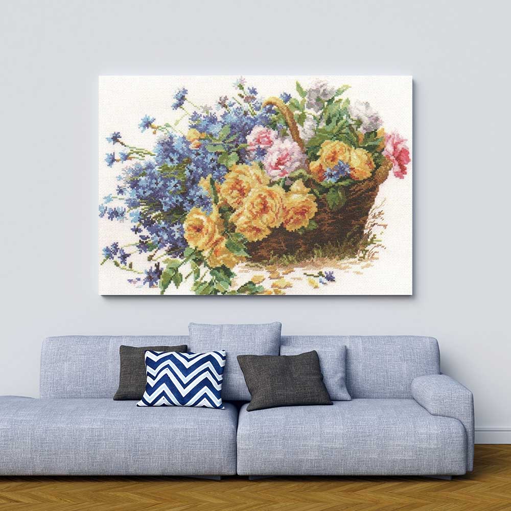 Kreuzstich - Rosen und Kornblumen | 40x30 cm