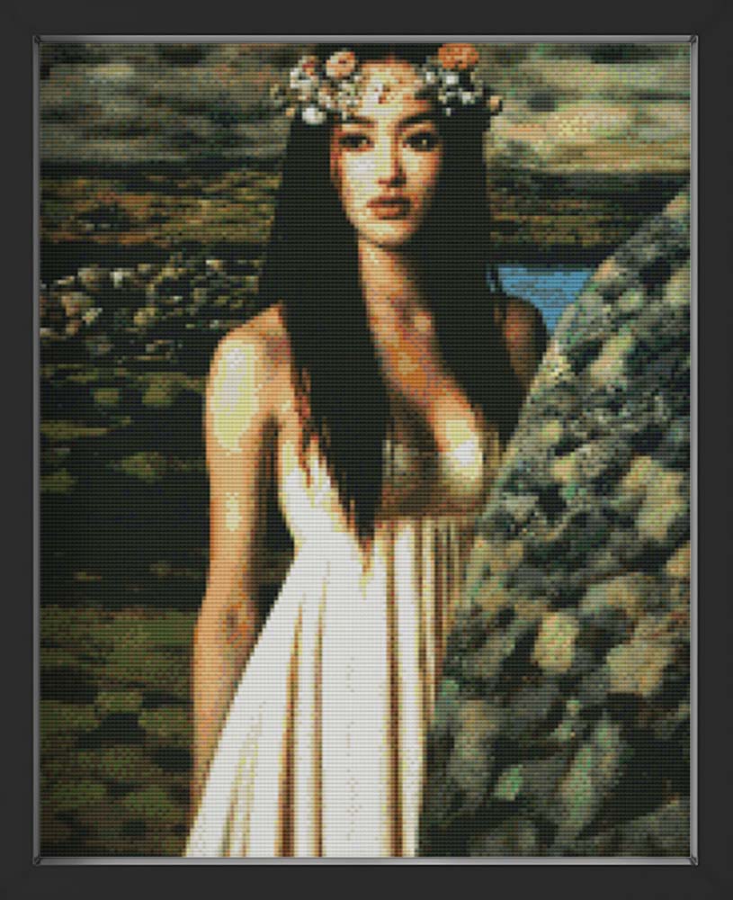 Kreuzstich - Schöne Frau im Kleid mit Blumenkranz | 40x50 cm