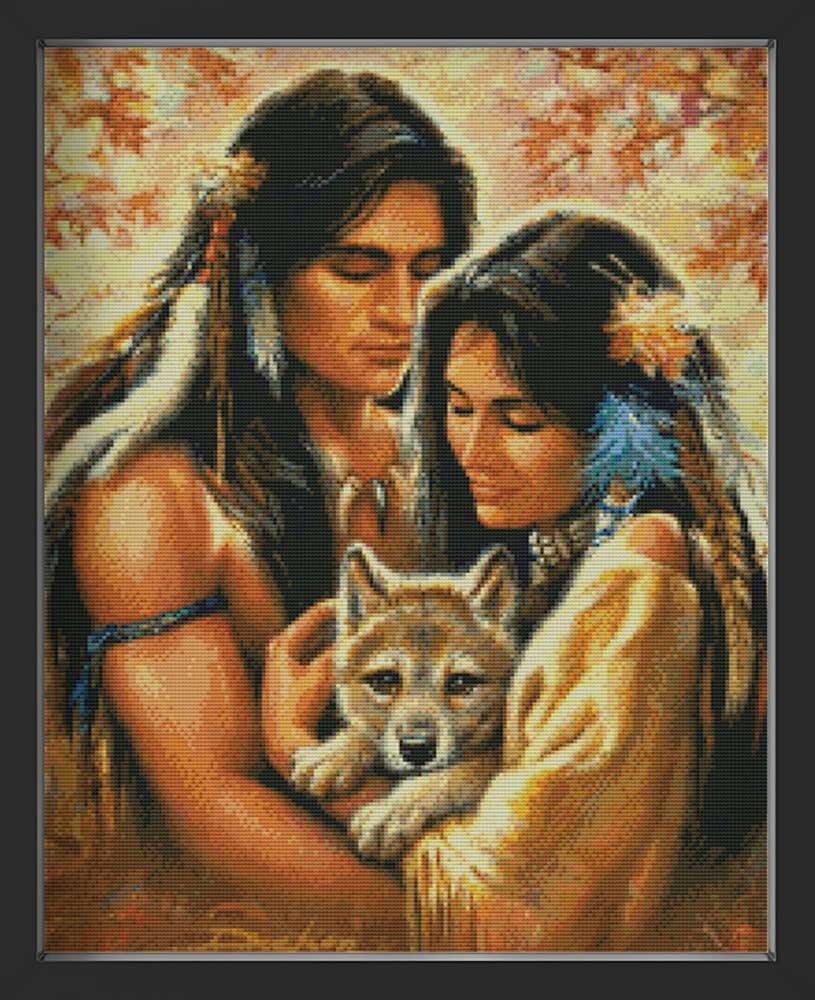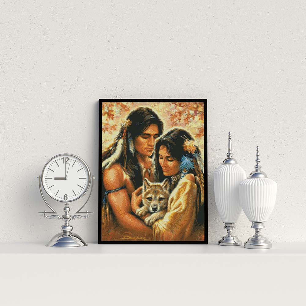 Kreuzstich - Indianer Paar mit Hund | 50x50 cm - Diy - Fadenkunst
