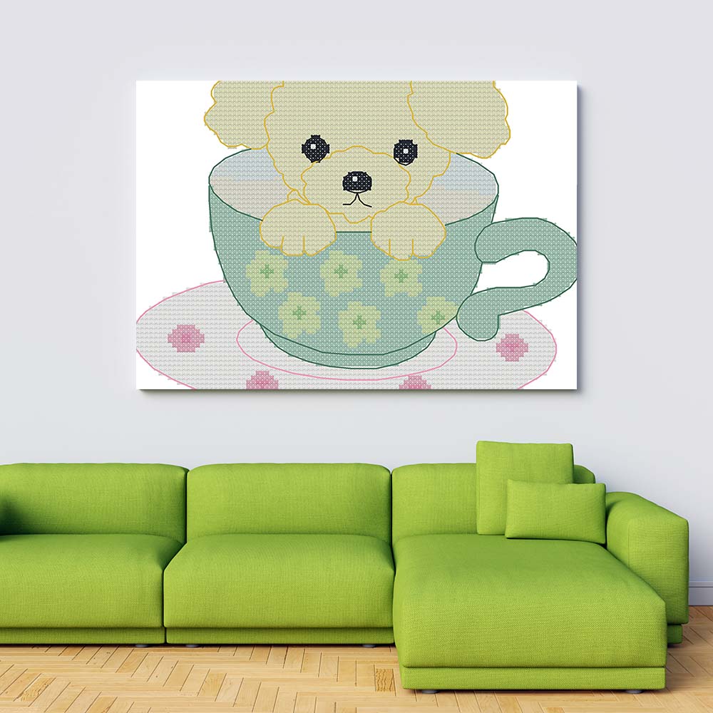 Kreuzstich -  kleiner Hund in Tasse | 20x20 cm - Diy - Fadenkunst