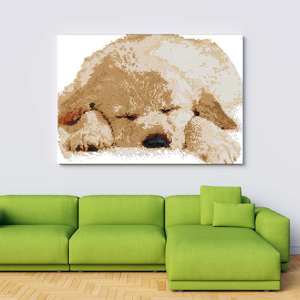 Kreuzstich - Kleiner Welpe am Schlafen | 40x30 cm - Diy - Fadenkunst