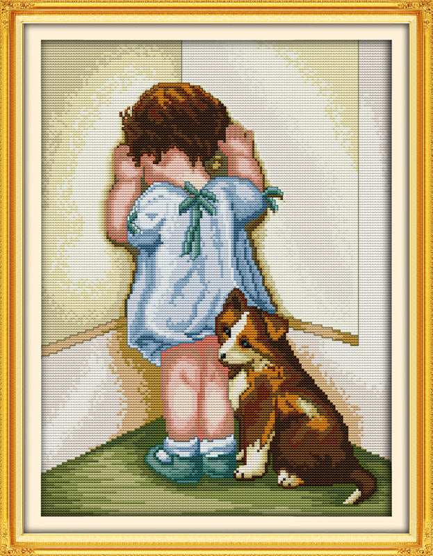 Kreuzstich | Kleines Mädchen mit Katze - 14 x 19cm