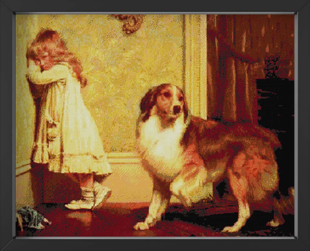 Kreuzstich -  Mädchen und großer Hund | 70x60 cm - Diy - Fadenkunst