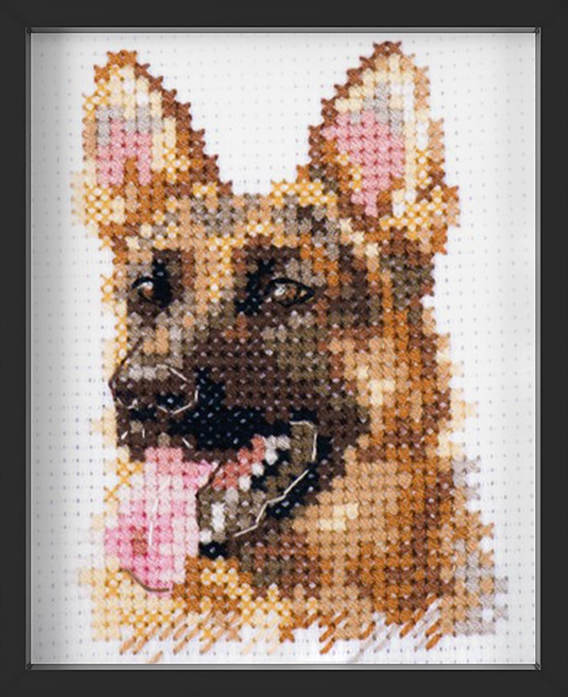 Kreuzstich - Tierportraits Schäfer | 10x10 cm - Diy - Fadenkunst