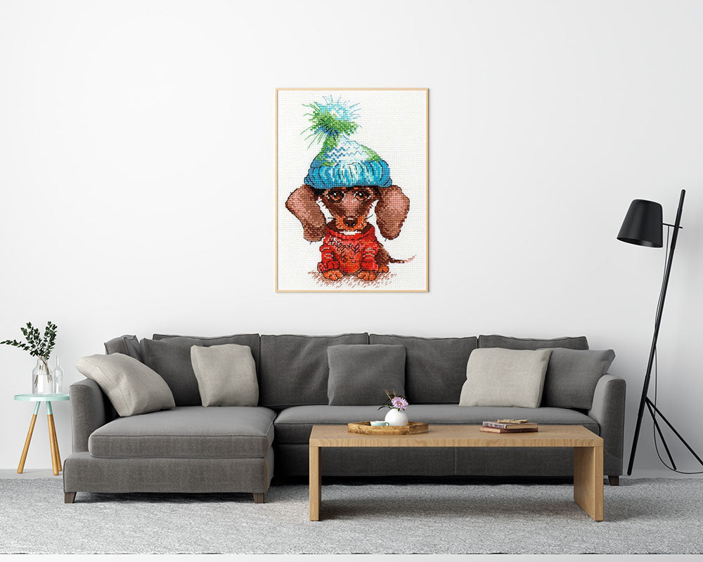 Kreuzstich - Trauriger Hund | 15x20 cm - Diy - Fadenkunst