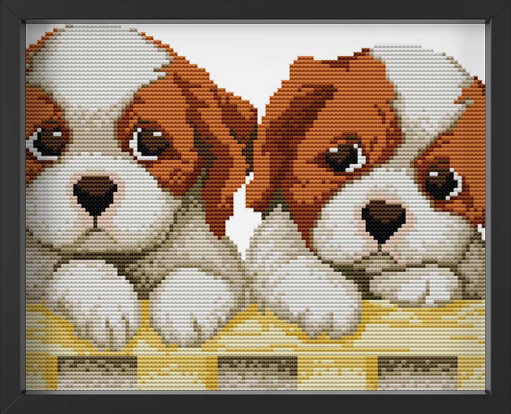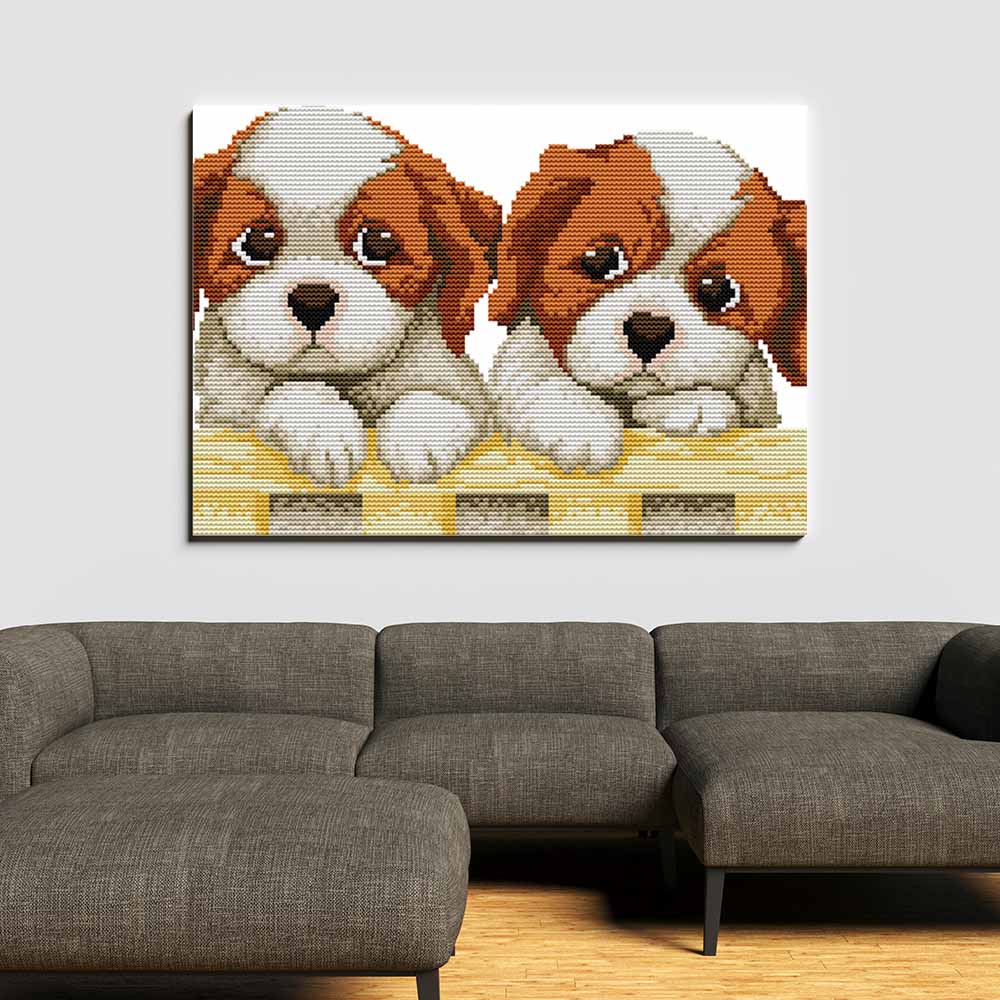 Kreuzstich -  zwei kleine Hunde | 30x20 cm - Diy - Fadenkunst
