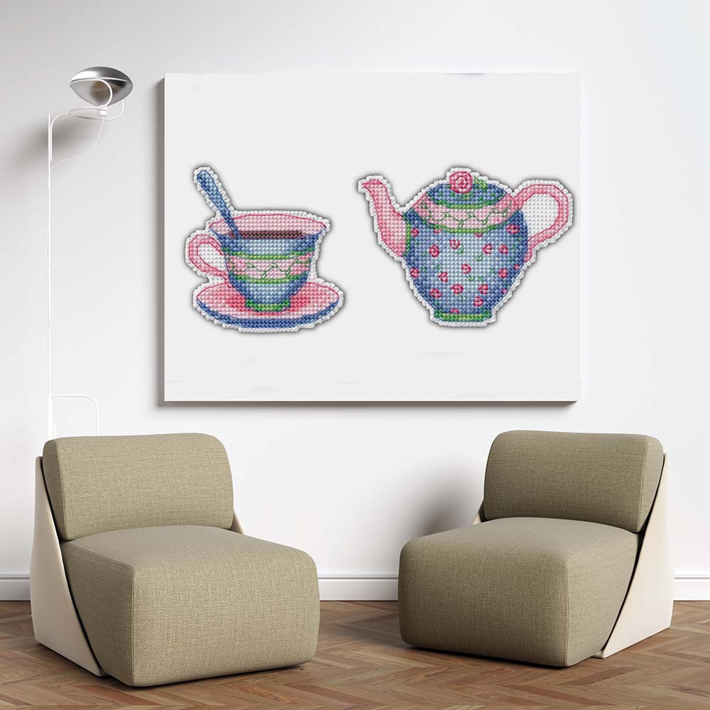 Kreuzstich - Magnete - Angenehme Teeparty 3 | 10x10 cm - Diy - Fadenkunst