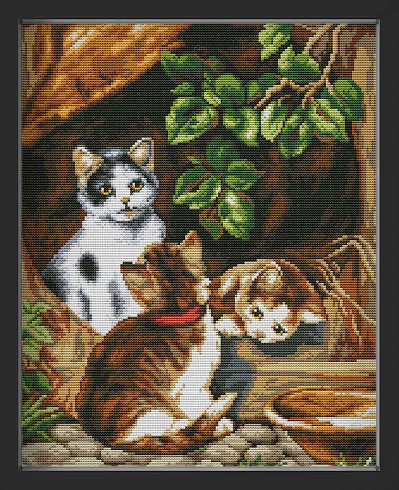Kreuzstich - kleine Baby Katzen | 35x45 cm - Diy - Fadenkunst