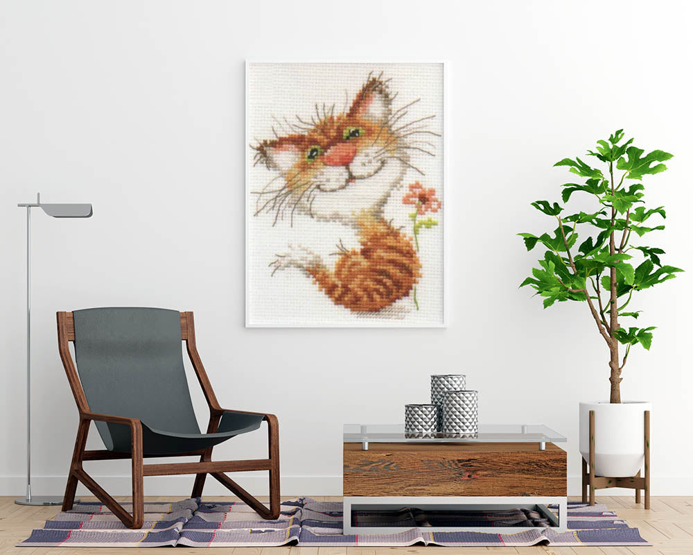 Kreuzstich - Muschikatze | 15x15 cm - Diy - Fadenkunst