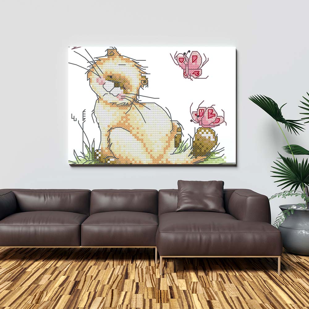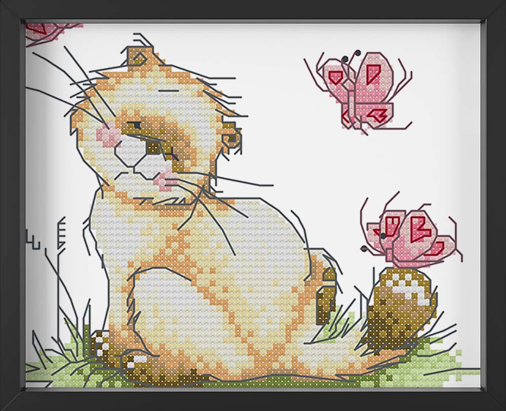 Kreuzstich -  süße Katze am sitzen | 20x20 cm - Diy - Fadenkunst