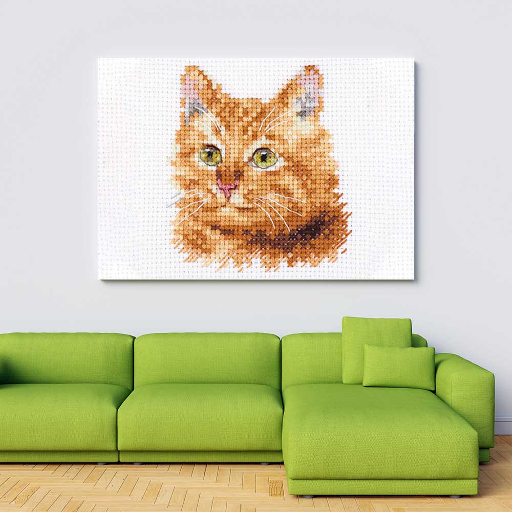 Kreuzstich - Tierportraits Ingwer Katze | 10x10 cm - Diy - Fadenkunst