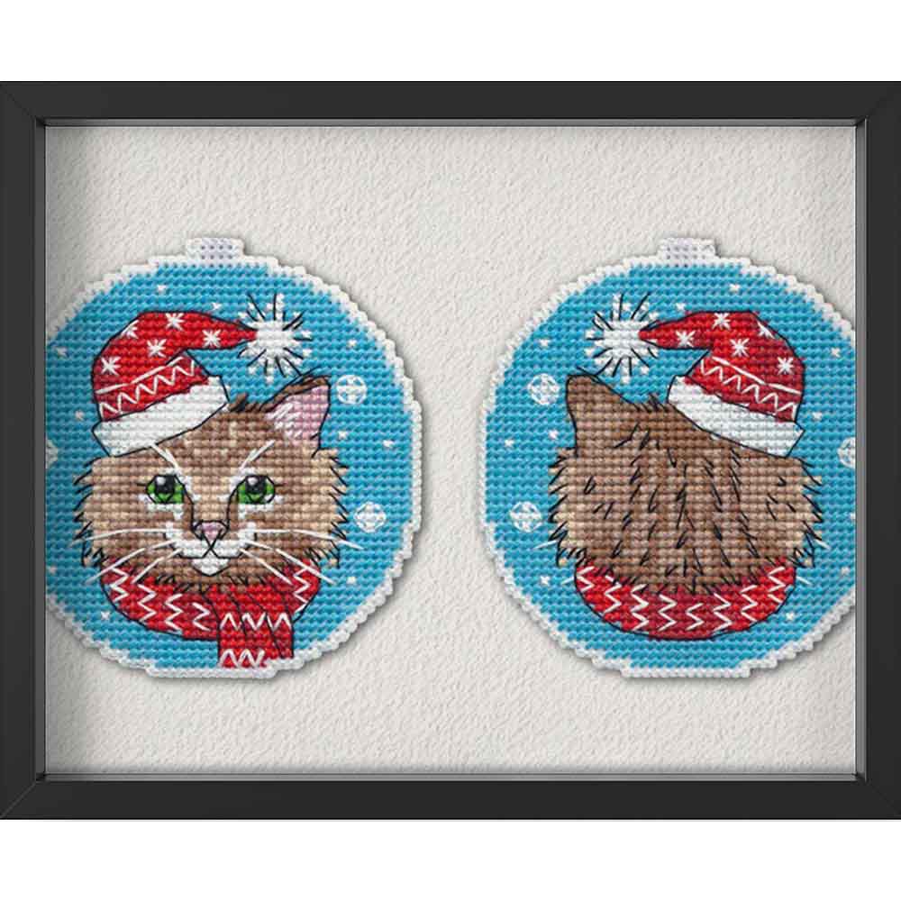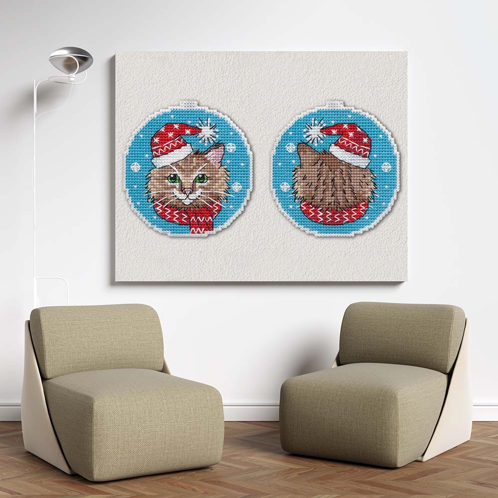 Kreuzstich - Weihnachts Katze | 10x10 cm - Diy - Fadenkunst