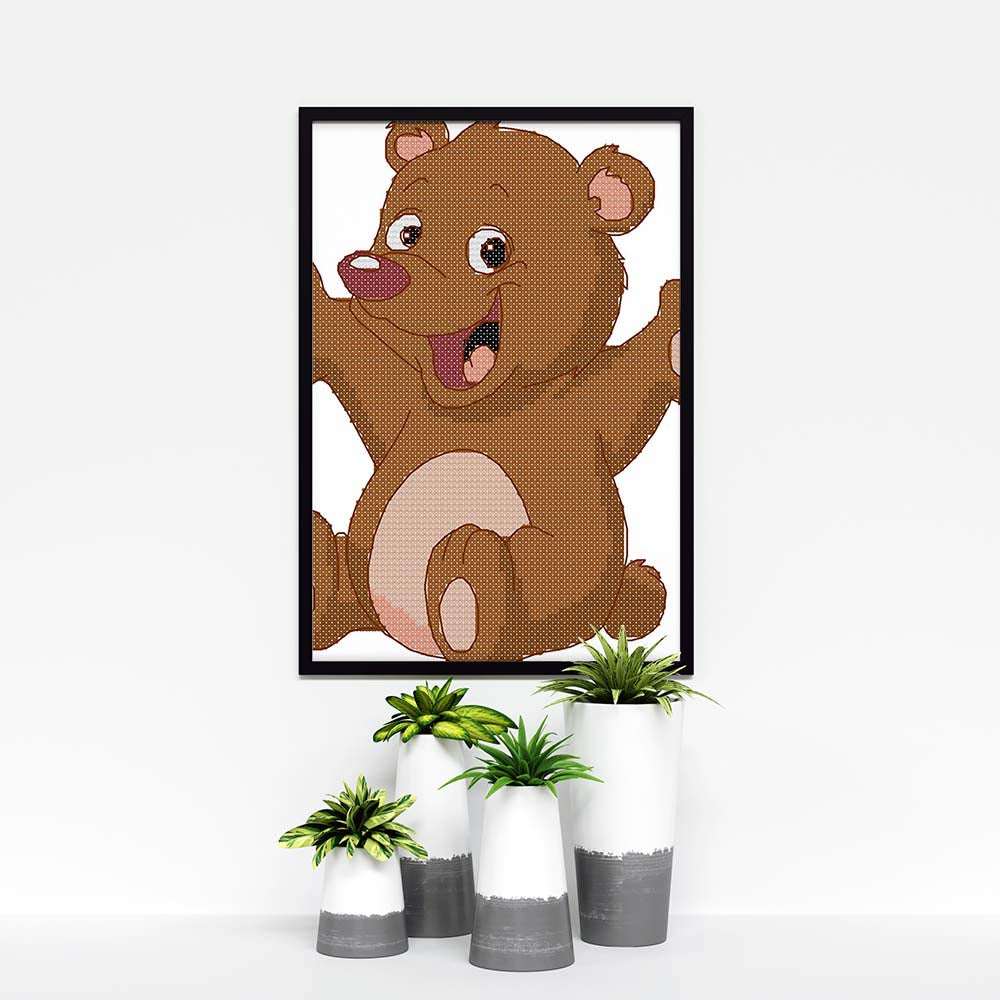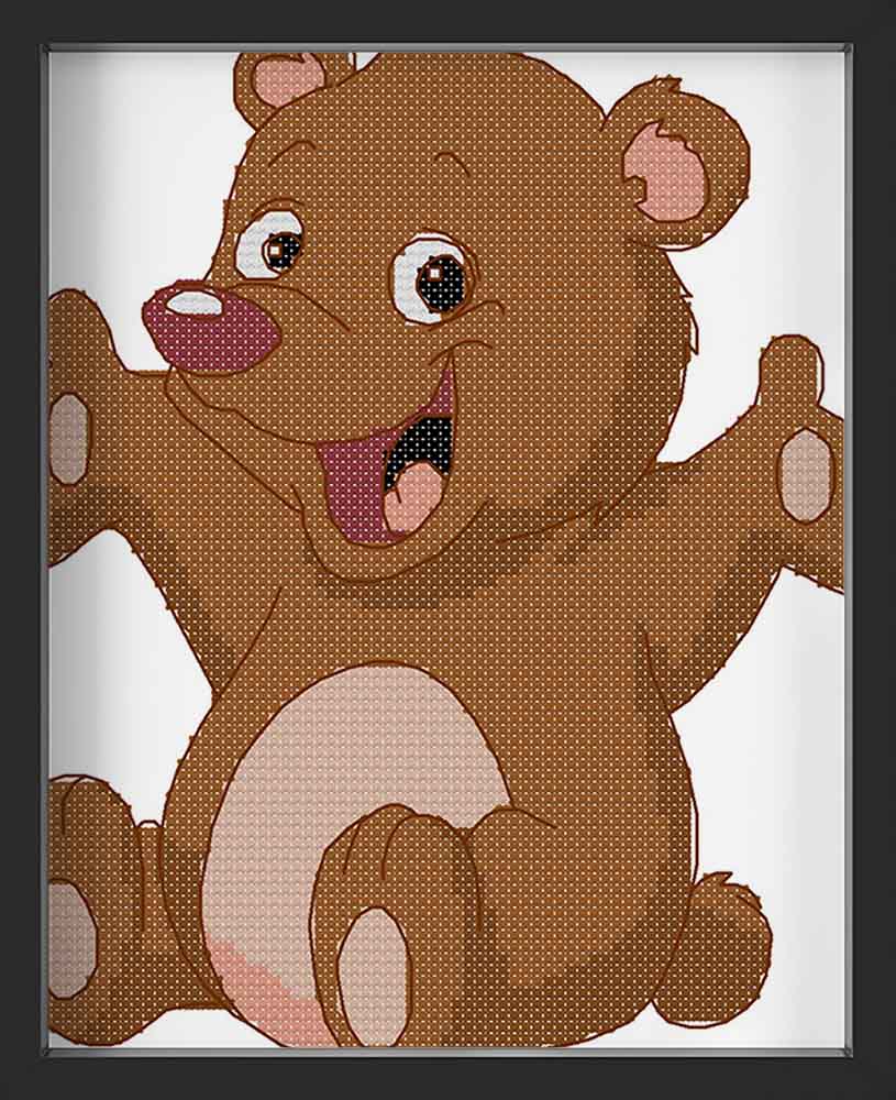Kreuzstich - brauner Bär lacht | 20x20 cm
